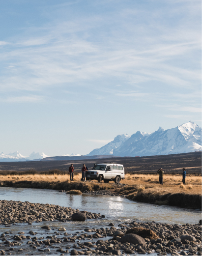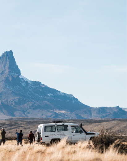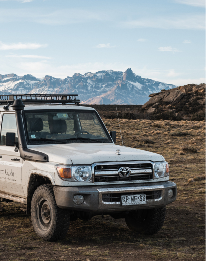«Montados en nuestros 4×4 y equipados para un día de exploración, saldremos a conocer parte de las 100.000 hectáreas de territorio de la Estancia Cerro Guido. En una aventura todo terreno, recorreremos campos, puestos y la naturaleza que nos rodea. Aprenderemos de la vida de estancia en Magallanes y su historia.
