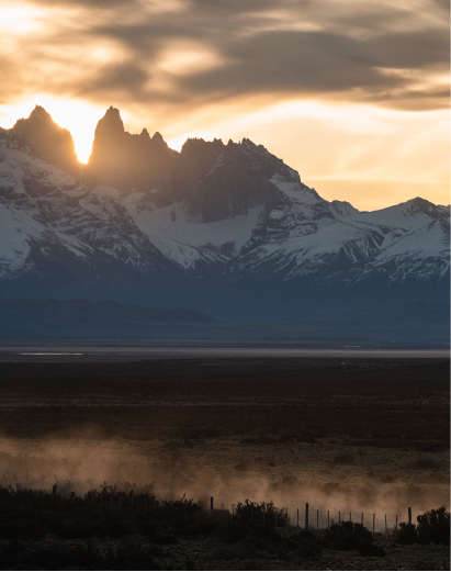 Nuestro recorrido parte por el sector de Las Flores, antigua estancia a los pies de la Sierra Baguales, en donde realizaremos una pequeña caminata para conocer su salvaje naturaleza y disfrutar de un almuerzo campestre. En la tarde nos internamos en la inmensidad de la pampa, siguiendo el rio Baguales nos vamos a El Palique, otro de los puestos ganaderos de la estancia y lugar de recientes hallazgos arqueológicos, desde este punto nos aproximaremos al límite entre Chile y Argentina para conocer uno de los hitos fronterizos y luego regresar al hotel.»